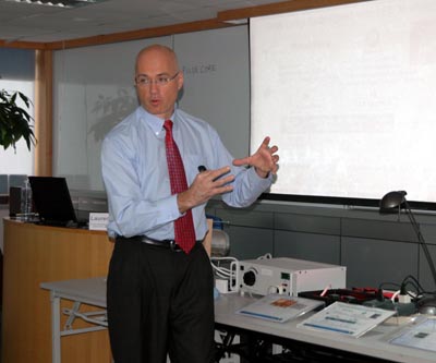 LED 通用照明及电源营销和系统工程总监Laurent Jenck为媒体讲解