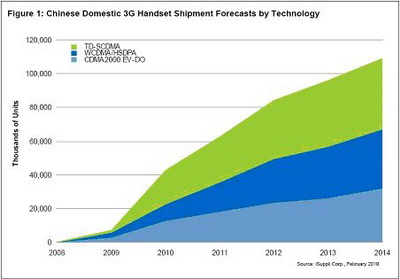 同样来自这家市调机构的分析师Sravan Kundojjala表示,“trategy Analytics相信,芯片提供商的竞争将使TD-SCDMA手持设备价格降低,并潜在地帮助TD-SCDMA在W-CDMA 、CDMA2000 1xEV-DO等无线技术中建立有竞争力的地位。”