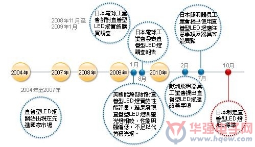日本LED照明销售量快速成长,相关标准的推动也显得格外重要,在LED照明标准方面,日本工业标准调查会已制定电球型LED灯的安全及性能规范(JIS标准),而2010年10月日本电球工业会也订出直管型LED灯标准,内容特别着重安全性部分。