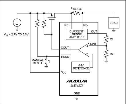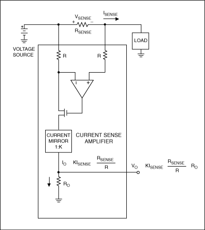 图1. 根据欧姆定律测量电流的高边电流检测器。