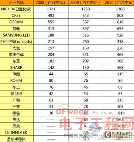 一、LED产业市场竞争格局一览: