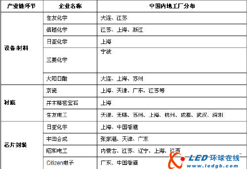 目前,日本主要LED企业在国内都建有生产基地,主要集中在东部沿海地区。整体来讲,各家企业中国工厂生产的产品层次均低于日本本土工厂,多数高端产品、核心设备与原材料的生产尚未在中国内地布局。
