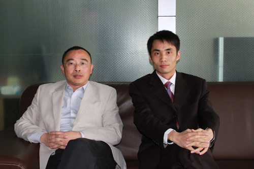 图为中为光电董事长张九六(右)和高工LED CEO张小飞博士(左)