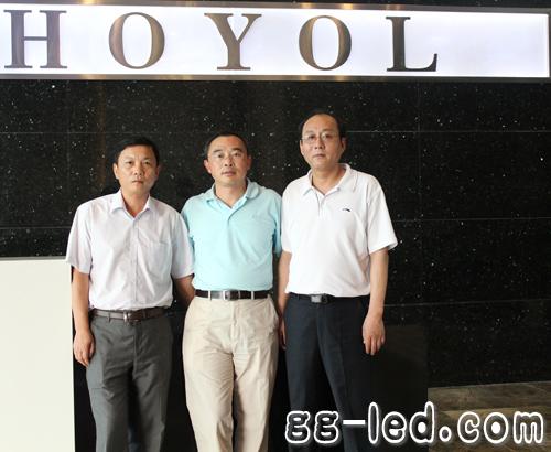 图左为泓亚光电子董事长杨向红,图中为高工LED CEO张小飞博士,图右为泓亚光电子总经理常保严