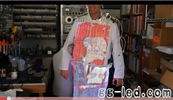 【高工LED专稿】 【高工LED讯】美国亚利桑那州一名叫大卫·福布斯(Dave Forbes)的男子,耗时6个月以及耗资2万美元,发明了一件LED影像外套,可像彩色电视一样播放影音、文字和图像。