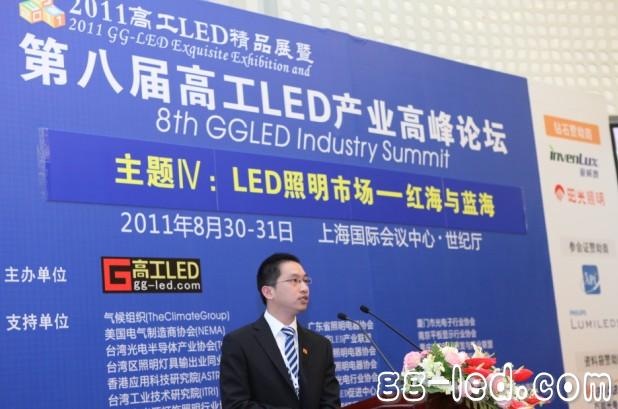 浙江阳光照明电器集团股份有限公司 总经理 官勇先生 发表了未来家居照明的市场最为庞大的论点。官总认为到2012年后LED照明的渗透率才可能逐渐超越节能灯。在所有应用领域,最核心的问题是光的品质是否可以替换。对照度和色温的参数最为看重。在各细分领域中,家居照明对价格比较关注,户外照明对运营费用比较敏感。商业照明对灯的形状要求较高,对寿命反而不是要求很高,如果运用EMC模式,则对回收期要求比较苛刻。在直接采购和EMC模式中,EMC模式的运用并不普遍。