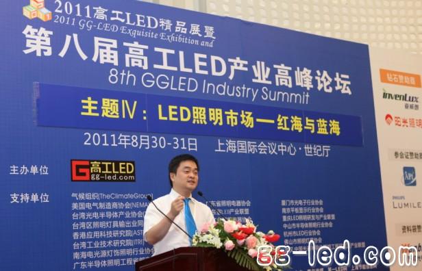 高工LED产业研究所 研究总监 张宏标先生 分析了2011年上半年中国LED照明市场现状, 他为大家分享了调研数据,2011年上半年,中国LED灯泡产量超过6000万只; 全球76%以上的LED灯泡在中国生产,LED灯泡以出口为主,出口占82%以上的比例。他预计2011年中国LED灯泡产量将超过1.5亿只。
