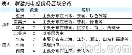 2009年3月,联建光电在美国设立了全资子公司,主要负责北美地区的业务拓展,同时为公司开展海外直销业务积累经验。公司未来计划将其建设成为北美地区的运营中心,逐渐提升公司外销产品中的直接销售的比例。