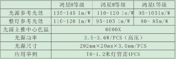 物美价廉才能被市场接受,“鸿星”系列是极具性价比的产品,研发团队以及客户终端分别各自实验对比,得出结论:同样的芯片同样的使用数量和驱动方式,采用“鸿星”系列封装形式比SMD分立器件经SMT集成后光效更高,个别客户测试甚至相差15%,这也验证了“单颗分立器件光效高但贴装后光源模组光效会降低”的观点。当客户选用“鸿星”系列产品时,若对比同样芯片的SMD器件,其价格、光参数、安装便利性以及信赖性皆具优势,可以不依靠贴片机仍可大批量生产日光灯管,这是日光灯管生产的重大变革。当然,若客户为满足节能工程标案的高要求,鸿利光电可以提供更高光效的日光灯方案。鸿利光电希望配合客户研发更高世代日光灯管,满足价格、光效、功率、以及排布的多样化需求。