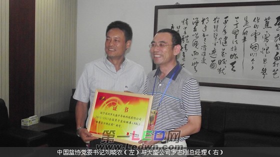 肯定盛牌LED显示屏 中国篮协向大盛科技颁发证书