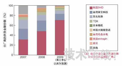 全球最大的电视厂商三星电子至今为止尚未公布大型OLED面板的量产计划。但该公司旗下最大的小型OLED面板制造商SMD却几乎独霸了有源矩阵型OLED面板生产份额(图4)。可以说,该公司积累了最为雄厚的OLED面板生产经验。因此,不断有预测指出:“韩国三星电子可能会把现在用于第5代液晶面板的生产线改造成电视用OLED面板生产线”(多位精通电视行业的分析师))。(未完待续,编辑:LEDxume)