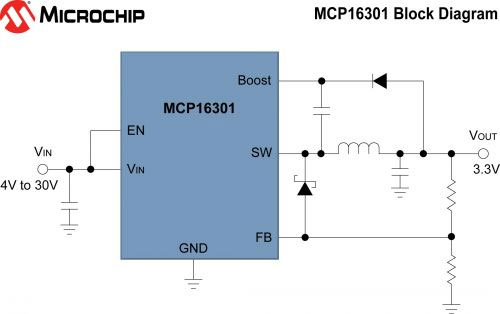 Microchip推出30V输入、600mA输出的降压开关稳压器MCP16301