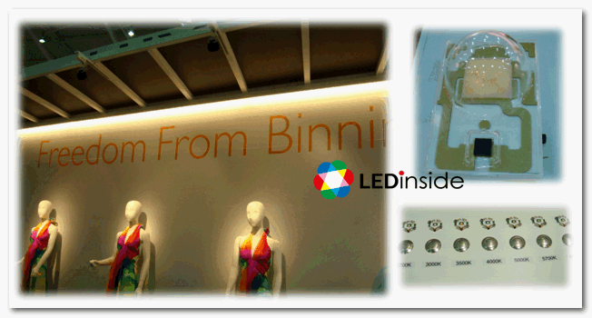 Philips Lumileds今年主打”Freedom From Binning”与”Hot Testing and Binning at 85。C”两大特色,强调光源品质的一致性和均匀性,透过指定的工作温度(85。C)与色温,集中落在3-step MacAdam Bin Structure,简化设计过程,提供完整的LED解决方案,广泛应用在室内照明领域。Philips Lumileds在这两大概念下,推出亮绚LUXEONA和亮绚LUXEONS,演色性至少在80以上。亮绚LUXEON S以9封装芯片紧密排列,光通量达1300lm,耗电量仅为18W,因紧密排列下没有叠影,光源品质佳。除此之外,亮绚LUXEON H为Philips Lumileds推出的HV LED产品,一瓦50V下提供110V与230V的解决方案,演色性达83以上。此外Philips Lumileds提供给客户相当多的附加价值服务,包括技术解决方案团队(Technical solution engineer with sales reps)与顾客专案应用团队(Customer Program Application Team ;CPAT)共同为客户提供LED照明所需的光机电热技术与设计上的服务。