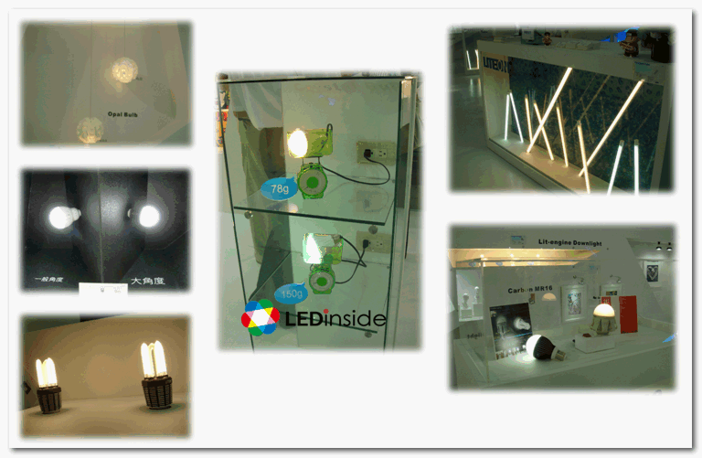 光宝以“Lite-On the Light, Green Your Life”为诉求,会场中展出LED照明产品,包括全球最轻量78g、Ra>90、800lm电球,与符合IP54之防水及V0防火等级之AC LED灯管。展览中,也包括荣获2011 iF设计大奖的“行动电球”,利用LED元件低电压启动特性,结合电能与控制应用新概念,让LED灯泡抽离灯座后仍能自行发光,停电时灯球摇身一变就成紧急照明灯或手电筒。此外也推出三款出光角度高达300度的灯泡与灯具,近于白炽灯的照明效果。
