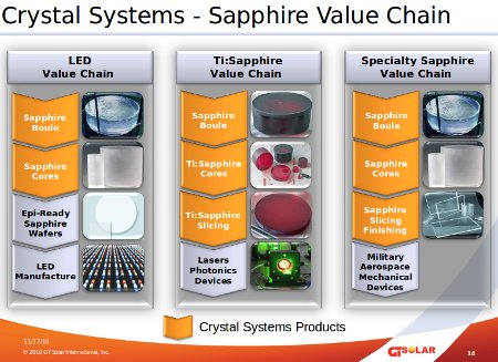 而尽管LED用的蓝宝石基板价格持续下探,但LED蓝宝石基板设备厂商的订单仍旧是火热,包括日前已经改名为为GT Advanced Technologies的GT Solar,以及ARC Energy、Thermal Technology、CrystalTech等公司,在2011年Q2、Q3陆续都出现更多的LED蓝宝石相关生产设备的订单消息。