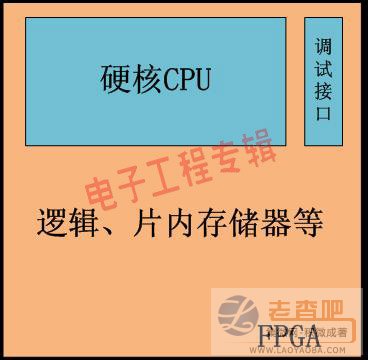 因此,特权同学期望的架构如图4所示。不需要太丰富的外设,毕竟FPGA内嵌硬核的最大利好就是灵活性,因此我们势必可以将所谓的灵活性发挥到极致。也许这个架构简单到只要一个能够跑软件的“裸核”和必须的调试接口即可,其他所有的外设(包括最小系统运行必须的存储器接口等姑且都称作外设)都根据客户的需求自主架构。说白了,其实这成了一个“CPU+FPGA”的架构了,哈哈,这只是个人的一厢情愿,也许只是个人觉得这样的架构最适合目前手中的一揽子项目。欢迎大家一起探讨……