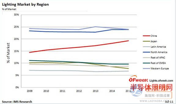 增长基本上都出现在北美和西欧等全球发达地区,这些地区构成了全球50%的照明市场。但中国却例外。 2010年,中国占据了全球照明市场的14%。到2015年,预计这一比例将提高到20%。经济持续增长,建筑业蓬勃发展,电荒不断和公众购买力增加等,这些因素都将对中国地区的照明市场产生影响。