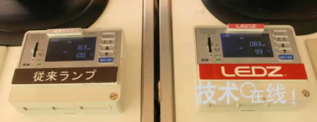 图2:耗电量的比较。左侧为现有照明,右侧为LED照明。与现有照明的1.63kW相比,LED照明仅为0.83kW。