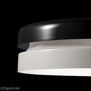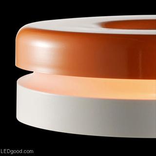 法国知名设计师Patrick Norguet 的灯具设计作品,这款名为 Toric的吊灯有着简洁优雅的外型,上下两层亚克力发光设计,超大明亮的灯盘作为照明主光源,旁边镶着一圈光芒的华丽镶边。不仅具有经典灯具外观,还可选择搭配经典颜色搭配,黑白色或者橘白色的烤漆灯罩。