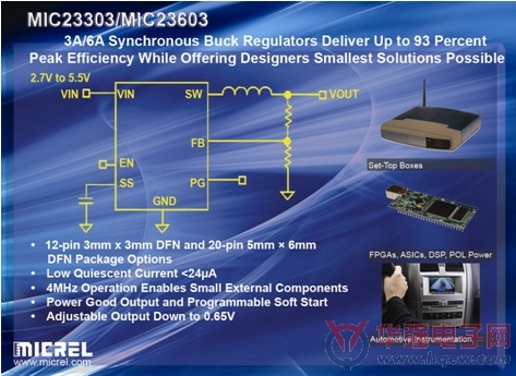 2月28日至3月2日,在第十八届国际集成电路研讨会暨展览会上,麦瑞半导体(Micrel)推出了基于HyperLight Load专利技术的降压型稳压器产品,以降低消费类电子、汽车、工业等领域产品的功耗。
