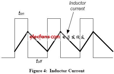 当电感的电感量大于此值Lx时,输出纹波随电感量的增加几乎不再变小,由于增加电感量可以减小磁滞损耗,另外考虑输入波动等其他方面影响取L=60uH,