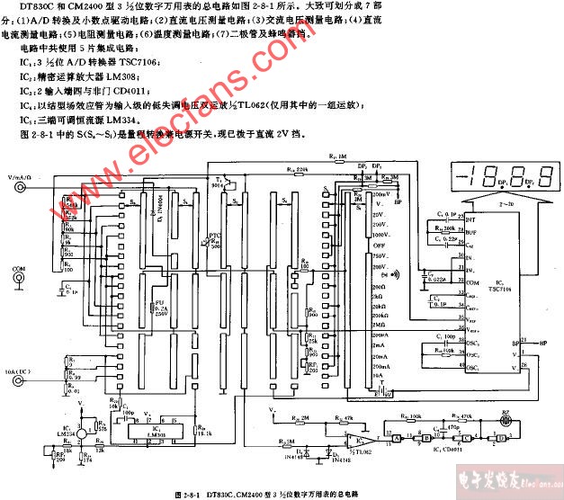 DT830C、CM2400型3,1 2位数字万用表的总电路图